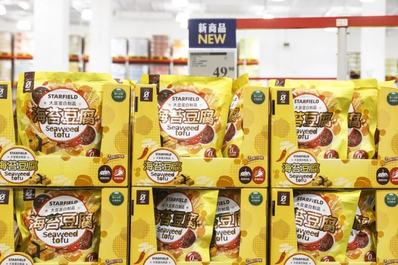 近日,国内植物蛋白食品先锋品牌星期零推出零食新品海苔豆腐。据了解,该产品售价49.9元/袋,每袋包含照烧和香辣两种风味,目前在山姆全国47家门店和APP热销中。