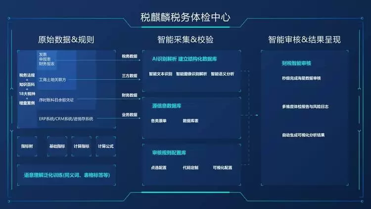 纯工具和纯人工的税务体检方式都有极大的局限性。基于此,税麒麟在AI变革未来的时代前瞻性地开发了人机协同的企业智能税务大脑模型TaxShield。TaxShield是行业首个以税务稽查视角为审核逻辑建立的财税大数据体检和风控系统,以超自动化+指标结构化的技术方式最大限度地还原税局风险识别能力,人机协同的服务机制,审核企业原始数据,取得证据链和事实依据,风险识别能力相比于传统风险识别系统提升了75%。