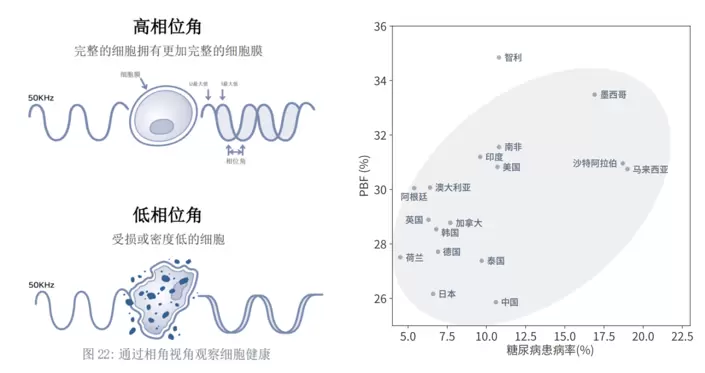过去,InBody设备被越来越广泛地应用在医疗领域,身体成分是诊疗、病情追踪、手术及康复过程中重要的参考指标。《报告》指出了身体成分在多个医疗领域中的应用,如通过跟踪体水分管理肾脏疾病、淋巴水肿、糖尿病和癌症,使用相位角评估细胞健康状况,通过骨骼肌指数(SMI)评估肌少症风险,通过体脂率判断糖尿病患病率等。数据证明,体成分在医学上具有广阔的应用前景。