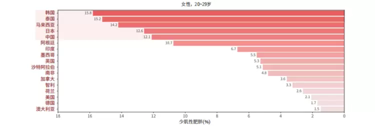 各国20~29岁女性少肌性肥胖率排名
