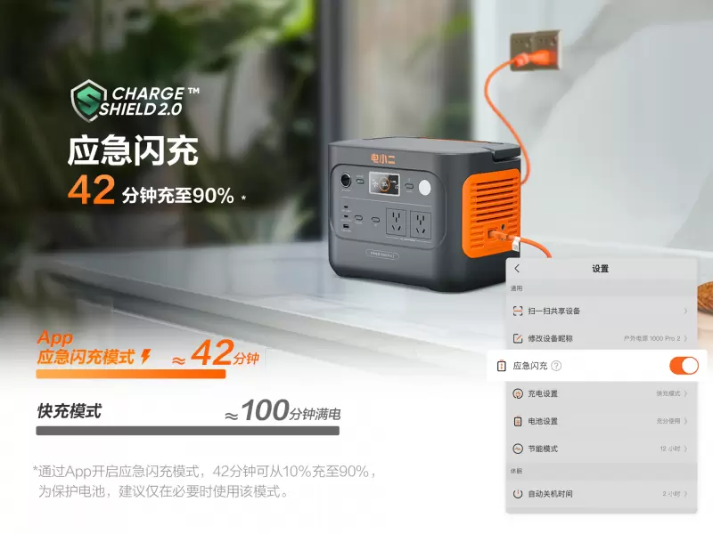 在充电效率方面,两款新一代产品均具备丰富的充电模式,包括快充、应急闪充及静音充电,能够满足持久耐用、应急突发、安静不打扰等多样充电需求,确保用户在各种环境下都能拥有可靠的用电体验。特别是新增的应急闪充模式,它能在最短1小时内极速满电,大大增强用户在突发情况下的电力自给能力。