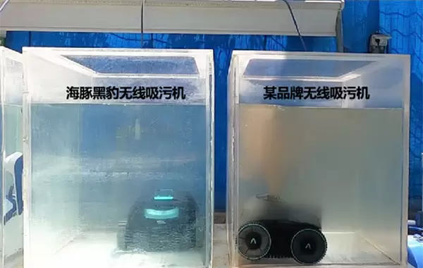 广州千叶作为泳池设备行业先行者,早早就将Maytronics海豚泳池吸污机引进到了国内,并成为了中国地区总代理。近日,为直观展示Maytronics海豚泳池吸污机的清洁吸污效果,品牌方做了一次对比评测活动。评测现场,设置了两个同样大小的污水池,分别使用Maytronics海豚黑豹无线吸污机和某品牌无线吸污机进行清洁对比。经过一段时间的吸污清洁,使用Maytronics海豚黑豹无线吸污机的池子水体变得清澈透明,而另一个池子依旧浑浊不堪。