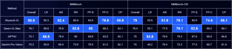 强大的模型技术实力赋予「天工3.0」超强的性能表现。在MMBench等多项权威多模态测评结果中,「天工3.0」超越GPT-4V,全球领先。