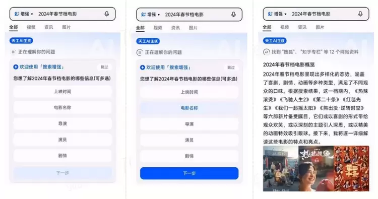 (Query:2024年春节档电影;「天工3.0」理解并追问用户需求)