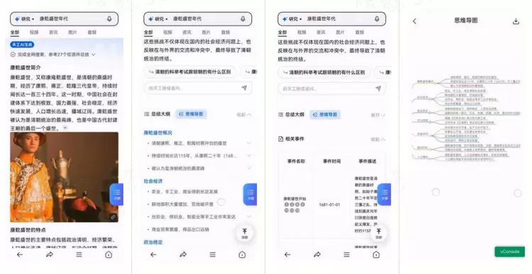 研究模式:在研究模式中,「天工3.0」能够围绕用户的某个简单指令进行相关问题的延伸,自动生成研究大纲、图谱、实践总结、思维导图,帮助用户快速清晰地把握核心内容,完成用户复杂的研究需求。