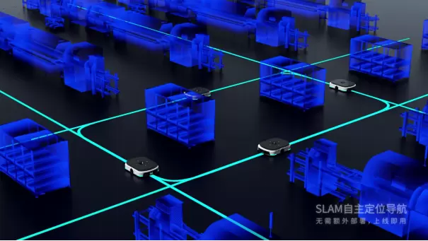真SLAM自然导航,不依赖磁条、二维码、激光反射板等人工标记,机器人智能建图,自主规划路径行驶,部署便捷,快速投产。
