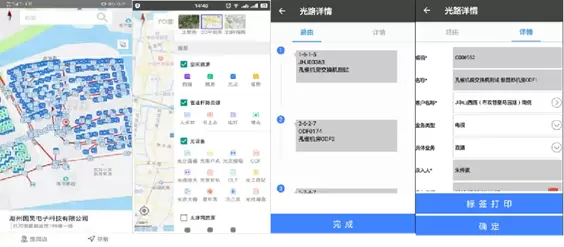 ESS APP也具备强大的数据编辑处理能力,具备独立、附属资源的录入、坐标拾取校正、拍照上传维护功能,满足外线资源采集维护需求。同时支持光路创建、实时更纤改纤,标签打印等能力,为业务开通提供有力支撑。外线装维时,通过扫描光纤上的条码,快速发起更改纤的操作,提高业务一次开通率。