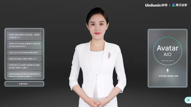 展位现场,洲明科技携手生态合作伙伴“腾讯智影”发布了《AI互动数字人方案》。2D真人互动数字人方案依托洲明自研空间感知、多模态交互、光显垂直模型LuminGPT等技术,同时结合了腾讯智影2D真人形象定制和驱动,使虚拟数字人更逼真、更聪明,同时适配主流LED横/竖屏的多显示终端,即插即用、简单方便。洲明面向各领域有表演、互动、直播等多元需求的用户,提供个人数字分身制作全流程服务。