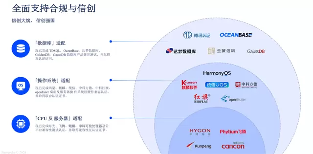 为全面支持国产操作系统的生态建设,国产化发展。凡泰极客旗下小程序平台FinClip已经完成了与「统信服务器操作系统(UOS)V20」、「麒麟软件NeoCertify」、中科方德「方德高可信服务器操作系统V3.1/V4.0」、OceanBase V3、腾讯云数据库 「TDSQL MySQL 版 V10」、龙芯、兆芯、飞腾等国产主流芯的适配,为在更广泛领域的深度应用打下了坚实基础。