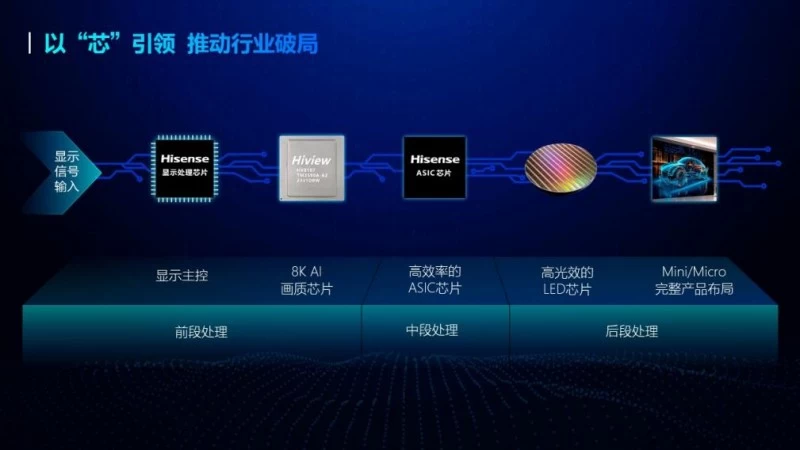 在传统LED显示行业中,显示控制卡、驱动芯片、显示屏各环节,不同厂家分工明确,虽然可以使行业分工效率最大化,但随着用户对于超高清显示画质的需求,对于智能化的需求越来越高,分段式的行业分工不可避免地遇到了瓶颈。作为显示行业的“领头羊”,海信从一开始便有意识的进行布局,打通产业链上的断点,让技术创新真正能够传递到终端用户,给用户带来价值,打造了以高画质、高性能、高标准、高质量、高体验这“五高”为核心竞争力的新一代猎影显示技术平台。