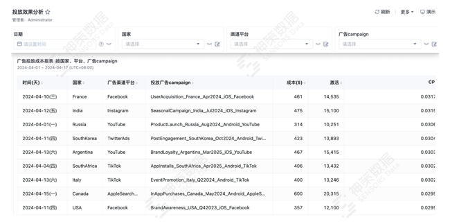 图 各渠道投放与买量数据(模拟数据)
