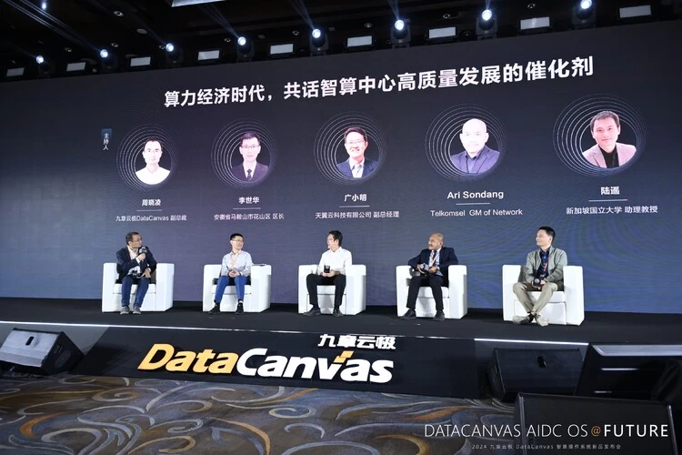 九章云极DataCanvas公司副总裁周晓凌主持题为“算力经济时代,共话智算中心高质量发展的催化剂”圆桌论坛,安徽省马鞍山市花山区区长李世华,天翼云科技有限公司副总经理广小明,印度尼西亚电信运营商Telkomsel网络部总经理Ari Sondang,新加坡国立大学助理教授陆遥参与对话,为国际智算产业未来发展贡献独到洞见。