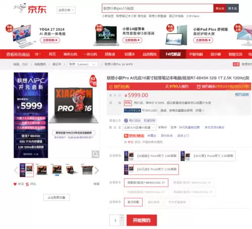 联想小新Pro16 AI元启搭载AMD锐龙7 8845H处理器,采用16英寸16:10 2.5K 120Hz显示屏幕,重1.91kg,厚度为17.5mm,84Wh容量电池,可选32GB RAM及1TB SSD,在京东下单的用户,赠送3年无忧全保服务,晒单还赠送AI PPT年卡。