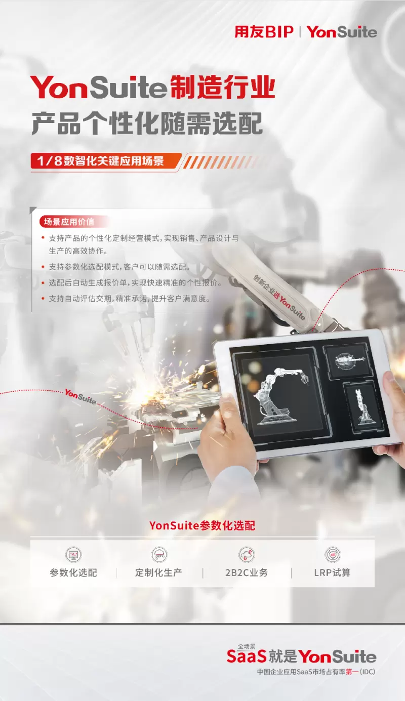 对于制造企业而言,为了满足消费者的个性化需求,必须能够提供灵活的生产能力,并迅速应对市场变化。YonSuite支持产品的个性化定制经营模式,使得企业能够根据客户的不同需求,实现销售、产品设计与生产的高效协作。通过参数化选配模式,客户可以随需选配产品,系统则能自动生成报价单,实现快速精准的个性化报价。同时,YonSuite还能自动评估交期,帮助企业精准承诺交期,从而提升客户满意度。
