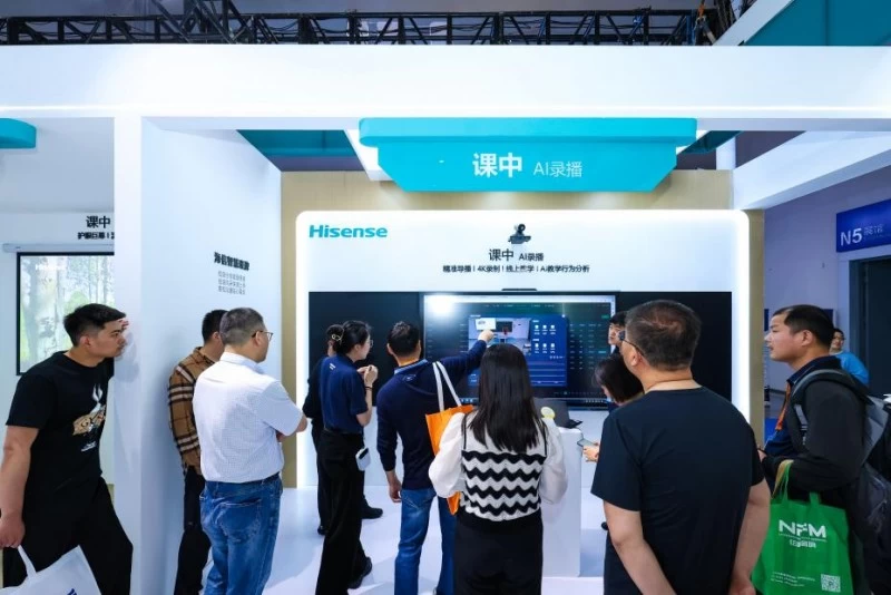 展会现场,海信智慧教育新品全阵容亮相,围绕课前、课中、课后、管理等教学流程,深度展示了AI等技术赋能下的全新教学图景。课前,海信基于AI数字化大模型,可帮助老师一键生成教学课件,在完成高质量备课的同时,更为老师节省精力与时间;课中,海信在现场展出了AI纸笔互动、互动研讨、激光护眼显示、AI录播、虚拟仿真教学等多个教学场景,针对教学细分痛点打造了差异化解决方案,帮助老师提高教学效率,帮助学生深入课堂学习。课后,海信可为学生提供个性化学习方案,基于学情大数据分析精准生成靶向作业,帮助学生更有针对性地进行学习,提高学习效率。此外,海信还展出AI巡课督导等校园管理平台,为班级督导、听课、查课提供便利,该平台还具备强大的学生行为分析能力,帮助学校进行高效管理。