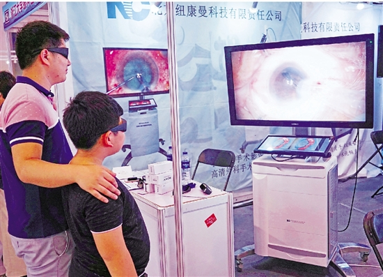 挑选完眼镜,李女士又戴上一副3D眼镜,认真观看起3D白内障手术大片。这是由浙二眼科中心与科技公司历时三年、共同研发的3D高清影像系统NCvideoHD。在3D的视觉效果下,一切都被放大80倍,整个眼球立体地呈现在高清屏幕上。