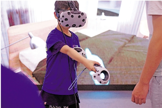VR眼镜里是怎样一个小世界?小男孩体验完,有模有样地跟钱报记者描述道,“里面有一个男孩子,我先跟他来到阳台,然后他眼睛就看不清了,后来又来到他的卧室,他睡觉前在眼睛里戴了片眼镜,早上起床后就又能看清楚了。”