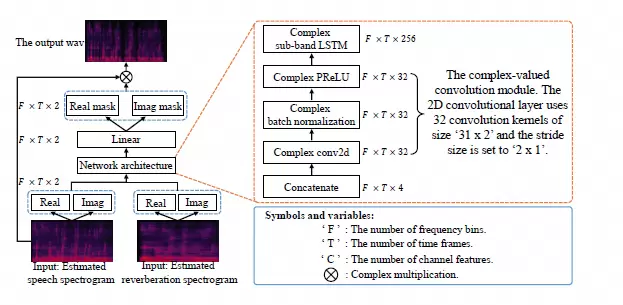 DR-SwWPE以data-resuse technique为出发点,通过严谨的数学推导和分析,首次从学术角度提出并且验证了麦克风阵列可以用自适应滤波器(adaptive filter)和神经网络(neural network,见下图)混合架构完成去混响任务。
