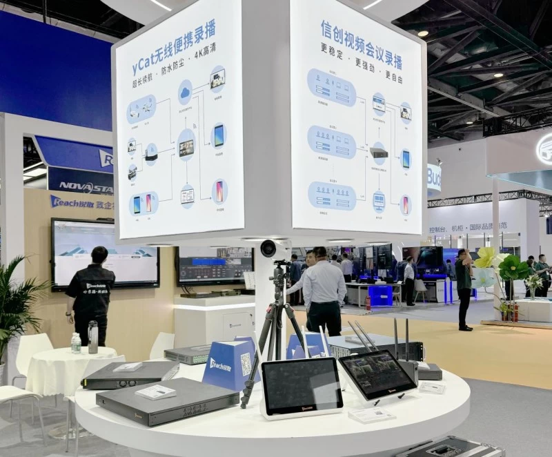 锐取智慧会议培训全系列产品也亮相了此次展会,包括会议录播主机、4K会议录播、yCat无线便携录播等,通过静态展示与现场讲解,让参展观众了解锐取的视讯产品实力。会议录播主机主要用于培训、会议等场景,锐取将针对单间或多间会议室,合理布局录播设备,配合云资源管理平台,实现全程直播或录制,加速政企数字化升级。4K会议录播重在优化画质,从整体画面到细节都更高清,确保每一帧的成像效果,适用于对画质要求更高的会议场景。yCat无线便携录播整体设计小巧且易于携带,拥有超长续航、防水防尘、4K高清等优势,适用于户外长时间直播,使用场景不受限、应对恶劣环境无压力,备受参展观众好评。