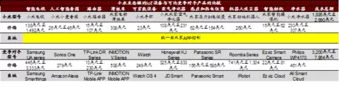 图表22:小米IoT产品与主要竞争对手的对比