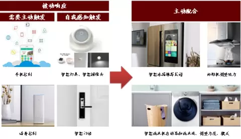 ► 响应命令:被动响应类型的智能家居需要特定信息的触发才能够得以启动,目前触发信号正从语音向图像、传感方向拓展。