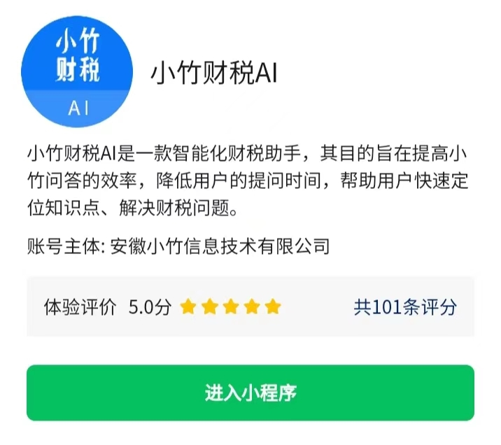 随着人工智能在国内的应用和普及,今年一季度以来,各垂直领域大模型数量激增,融资事件也快速增加。诞生于“中国科技之都”合肥的小竹财税AI,不仅在一季度获得了1000万元的种子轮融资,也以5.0满分的小程序评分,成为目前评分最高、最受用户欢迎的财税大模型。