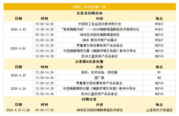 2024年4月25-27日,中国亚洲国际精酿啤酒会议暨展览会(CBCE 2024)将在上海新国际博览中心盛大开幕!届时,15000平方米,展商数量近达300家,预计吸引超过12000名专业观众参与。同时,还将举办超过10场的同期活动,让我们一起来了解CBCE活动的亮点,享受酿造的狂欢时刻!