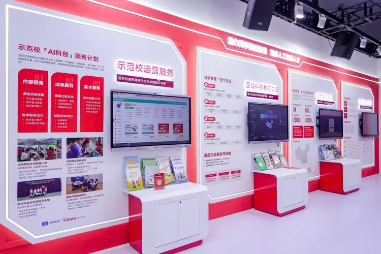 展会现场,点猫科技从示范校运营服务、区域科学教育加法服务、白名单赛事成果服务、拔尖创新人才培养四个方面展示了多样化服务方案,助力地区及中小学做好科学教育加法,赋能人工智能人才培养。