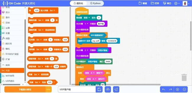 2.高效易用:OH-CODE延续用户使用习惯,通过收集用户反馈,持续迭代,给用户提供更好的“开源大师兄”图形化编程工具。