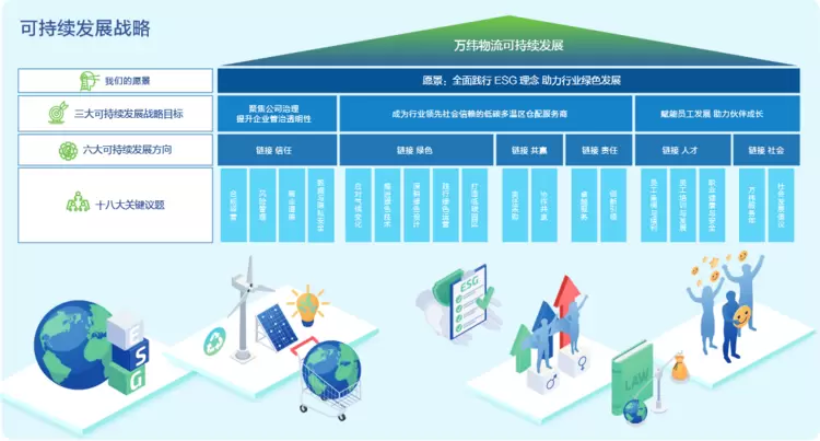 过去的2023年,万纬物流通过聚焦公司治理、应对气候变化、赋能员工发展等,确立六大可持续发展方向:链接信任、链接绿色、链接共赢、链接责任、链接人才、链接社会,在节能减排、绿色运营、技术创新、社会责任等方面取得了显著成就。