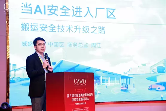 在企业分享环节,威盛电子中国区商务总监周江先生代表威盛为与会人员分享演讲《当AI安全进入厂区——搬运安全技术升级之路》,从厂区安全传统风险开始讲起,结合威盛的深厚技术背景和AI转型之路,深入浅出地分析了如何利用威盛车载AI安全方案的核心AI算法,以威盛SVS 360环视拼接技术、PD行人安全侦测技术、DMS驾驶员监控技术,以及AI算法的不断迭代升级,不断推动从工业车辆到工程机械的全方位安全监管。