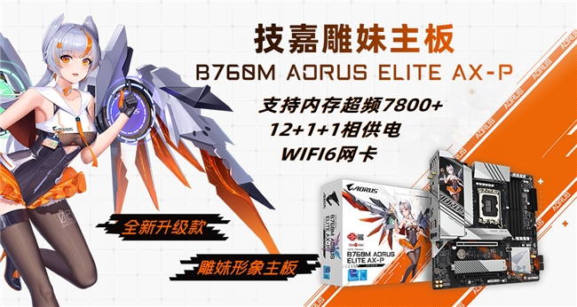 除了冰雕系列,技嘉最新推出的B760M AORUS ELITE AX-P雕妹2.0主板为小伙伴们提供另一种选择,这是一款技嘉二次元风格主板,专为技嘉虚拟偶像“雕妹”打造,充满了时尚与活力。主板在承继小雕系列深受好评的独特线条设计的同时,结合了雕妹动漫形象的喷绘效果,将动漫与科技进行融合,呈现出极具动感的视觉效果。