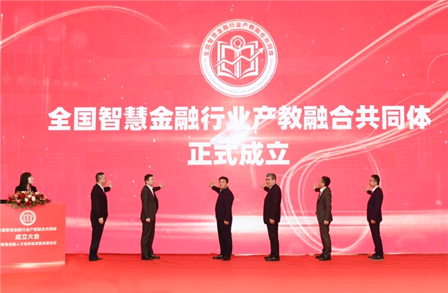 会上,全国智慧金融行业产教融合共同体成立仪式隆重举行,宣告全国智慧金融行业产教融合共同体正式成立。
