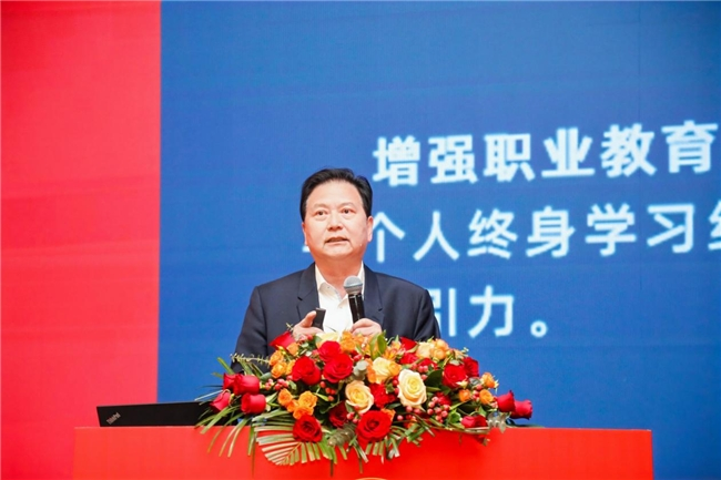 北京教育科学研究院职业教育研究所所长霍丽娟以“共创共享建设产教融合共同体”为题作报告。她表示,深化产教融合是促进校企协同育人的基本手段,提高人才培养质量的重要途径,提高职业教育适应性的根本保证,提升企业生产效率的动力源泉,推动产业升级进步的核心关键。霍丽娟表示,产教融合共同体对接区域、行业产业发展,是资源对接匹配、耦合贯通的合作形态,多层次、多属性的院校与企业的合作单元,具有较强的产业适应能力和治理成熟程度。随后,她分享了新时期深化产教融合的路径方法与策略:加大区域产教融合促进政策的同步性和执行力度,形成政策合力;厚植企业承担职业教育责任的社会环境;加强参与主体的资源整合能力,提高产教融合资源配置效率和成长性;注重区域产教融合共同体共建共享,形成增强集聚效应的运行机制。