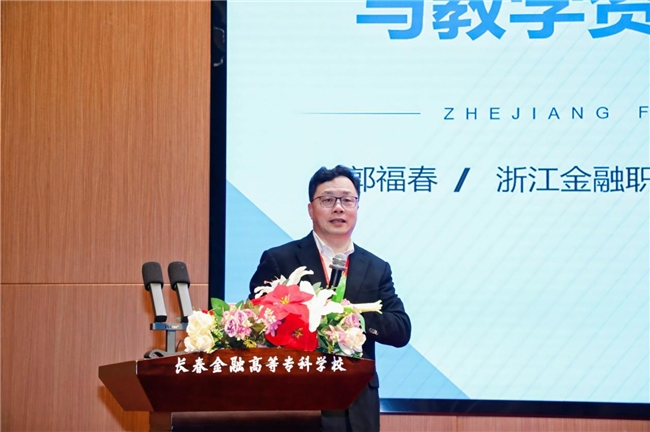 浙江金融职业学院副校长、全国信息化教学指导委员会副主任委员郭福春聚焦“金融职业教育课程与教学资源建设”作报告。他介绍了课程与教学资源建设的内在逻辑——“岗课赛证”综合育人的内涵和举措。他介绍,从哲学上看,在“岗课赛证”综合育人机制中,“岗”是本源性的,“课”“赛”“证”均因“岗”而生,属于派生性的。从功能定位来看,在“岗课赛证”综合育人机制中,“课”是人才培养的基本单元,承载了最直接的育人功能,是贯穿始终的要素,是整个机制系统运行的核心与关键,是各个环节衔接的纽带,是育人”养分加工转换器”。