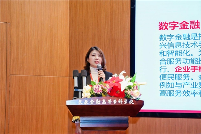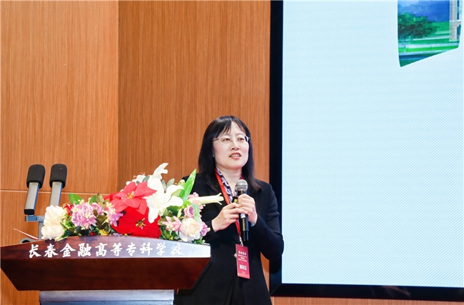 长春金融高等专科学校党委副书记、校长吕鹰飞以“产教融合赋能数字金融人才培养的实践探索”为题进行报告。她介绍了长春金融高等专科学校的发展情况,并详细分享了学校以“联”为引,服务区域数字经济发展新格局的举措:联结吉林省四大集群,创新培养数字金融人才;联结吉林省六新产业,校企共建产业学院;联结吉林省四新设施,科教融汇打造智慧教育平台。在创新现代金融职业教育新体系上,采取了岗位需求融入人才培养规格,职业能力融入课程内容,金融文化融入教学过程,行业标准融入评价体系,社会服务融入实践育人等举措。