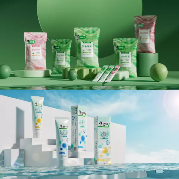 除此之外,我们还根据益生元在显微镜下的形态原型,把益生元成分提炼成抽象化的活力分子。借助这一关键视觉元素,让包装成为产品与消费者沟通的第一介质,加深消费者认知印记的同时,更直观传达益倍清带给口腔的健康与活力,进一步推动消费者完成从“感兴趣”到“买单”的决策过程。