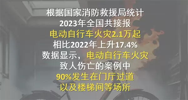 近日,与电动自行车相关的火灾事故接连发生,引发社会广泛关注。据统计,因电动车进楼入户、违规充电而引发的火灾事故有逐年上升的趋势,给人们的生命财产安全带来了极大威胁。