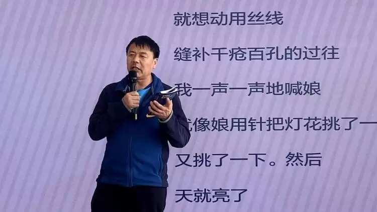 王计兵现场还朗诵并分享了他的四首诗歌《午夜推行人》《春天》《比喻》和《娘》的创作历程。读到《娘》这首诗时,王计兵回想起与母亲的点点滴滴,一度潸然泪下。