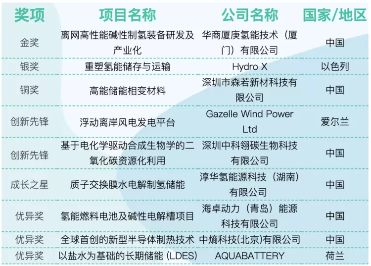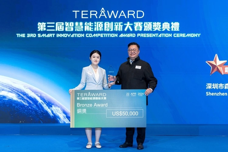 第三届TERA-Award大赛自2023年9月启动以来,共收到来自59个国家和地区的450个参赛项目。经过一系列严格的评审流程,由全球产业界、学术界和研究领域的权威专家团队综合考量,最终评选金、银、铜奖各1名,创新先锋奖1名,成长之星奖2名,优异奖3名。来自以色列的Hydro X获得银奖,奖金10万美元;深圳市森若新材科技有限公司的“高能储能相变材料”项目获得铜奖,奖金5万美元。本届“创新先锋”奖由爱尔兰Gazelle风能公司、深圳中科翎碳生物科技有限公司获得,成长之星则由淳华氢能源科技(湖南)有限公司摘得,优异奖分别由海卓动力(青岛)能源科技有限公司、中熵科技(北京)有限公司以及来自荷兰的AQUABATTERY获得。同时,香港中华煤气与获奖项目将探索在智慧能源领域深入合作的可能性,共同推动能源科技创新与可持续发展。