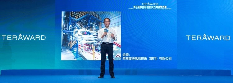 高小平博士对TERA-Award大赛组委会授予华商厦庚金奖表示感谢,他谈到,双碳目标是大家都在努力奋斗的目标,当前,华商厦庚已有第三代技术储备,未来的目标是把这个产品的安全性和稳定性做到最好,在氢能赛道加速奔跑,实现产品进一步升级、产能再扩大。