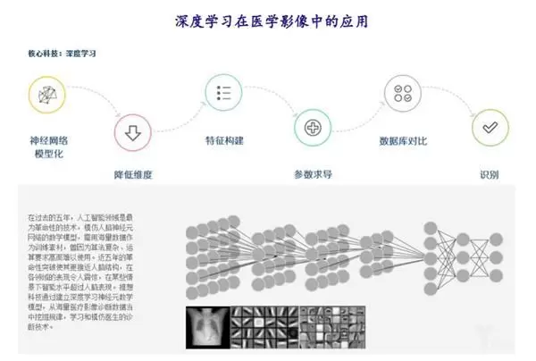 医生非常擅长定性分析,在看到片子一秒钟后就大致能判断出有什么问题,但是医生需要一些工具做更精准的判断,定量的分析,这是靠眼睛很难做到的,而利用人工智能的深度学习技术就能从医学影像中提取出有用的信息,帮助医生做精准判断。