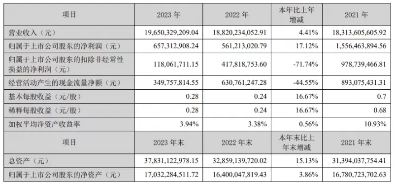 值得注意的是,在上述高强度投入的背景下,科大讯飞仍然实现了业绩的正向增长。该公司2023年实现营业收入196.50亿元,较2022年同期的188.20亿元增长4.41%;归母净利润为6.57亿元,较2022年同期的5.61亿元增长17.12%。