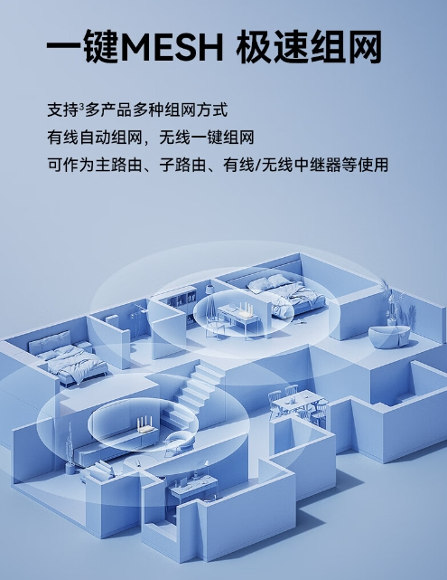 除了强大的硬件配置,中兴巡天BE5100还拥有自主性的软件体验。具备一键MESH功能,可以根据用户的需求自由设定MESH组网的阈值,享受个性化的网络管理和组网体验。在日常的用网环境中,用户可以根据室内布局调整主路由、子路由等,实现区域布网规划和多设备多种组网的方式。除此之外,也针对手机等支持WiFi7的设备进行联合调教,以确保更出色的适配性,让市面上大部分的WiFi7设备都能享受其流畅稳定的高速上网体验。