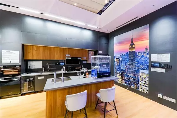 在客厅区域,恒温、恒湿、恒氧、恒洁、恒静的“好风”自在流动,通过中央空气处理机组,融合了“天风地水”的辐射系统和变风量全空气系统,客户可以沉浸式感受A.O.史密斯AI-LiNK智慧五恒好风系统带来的舒适体感;系统智能静音运行,全天候保持在30分贝以下,用户尽享宁静清新空气。通过AI-LiNK中央控制器可实现中央空气调节的智能交互效果,节能高效,AI-LiNK中央控制屏实现了关键指标精确数显,CO2、PM2.5、甲醛含量、温度、湿度实时可见。