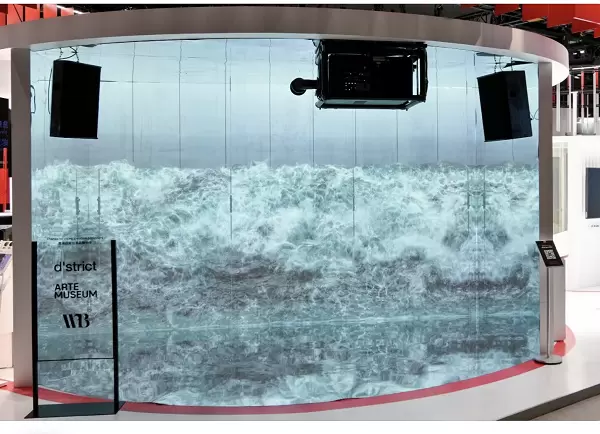 镜像沉浸式投影方案利用特殊镜面屏幕和超短焦镜头,在短距离内投影大尺寸画面。UDM-4K30投影机与UST 90°超短焦镜头组合,实现高质量画面,无惧环境光干扰,提供清晰图像,丰富互动体验。此区域影像来自于韩国d'strict 旗下 “ARTE 全沉浸式美术馆” 以及法国WB创意影像内容团队。海浪、迷幻城市、印象派四季等沉浸式影像,呈现出创意效果,让观众深刻体验沉浸式艺术展览的独特魅力。