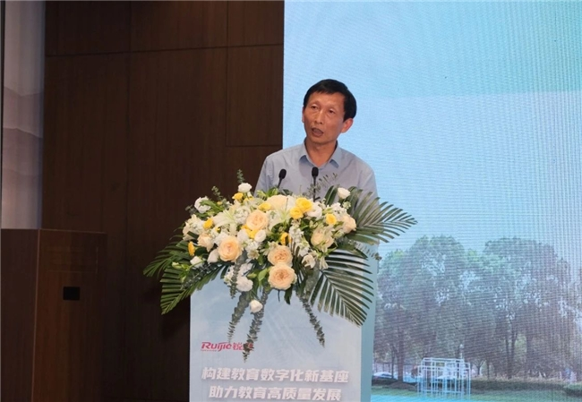 会上,中央电化教育馆研究员、中国教育技术协会学术委员会常务副主任刘雍潜围绕《教育数字基座的由来与发展》作了精彩报告,深入解读了教育数字基座的概念及其在教育行业中的重要意义。报告指出,“六新概念”是教育数字新基座的核心。这一新基座以技术创新和信息网络为基石,旨在助力教育高质量发展,实现数字转型、智能升级和融合创新。推进教育数字基座建设的关键在于实际应用,特别是中西部地区和农村地区需结合当地实际加快步伐。刘雍潜还提到,锐捷网络在甘肃的实践经验为经济相对后进地区的中小学建设数字基座提供了可行、易操作且经济的方案,值得广泛推广。