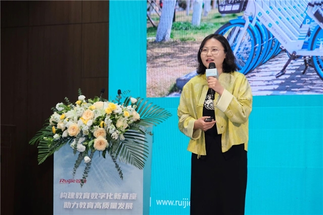 锐捷网络教育系统部普教行业营销总经理岳雯则以《构建教育数字化新基座》为主题,分享了如何构建教育数字化新基座的策略和实践。她提出,新基座的建设应秉持“因分散而闲置,因集中而高效”的理念,从教学终端和网络两个层面入手,打造更加弹性、智能、集约的数字化基座。在教学终端层面,改善教学终端的建、管、用模式是数字化重构的关键。通过“全局一朵云”建设,算力从被动“给予”变为主动“获取”,实现了资源利用、管理运维、专业服务及科学决策能力的全面提升,并显著降低了能耗。同时,为每个VDI桌面标配GPU,采用屏幕广播模式进行统一教学,有效解决了性能问题和断网困扰。在网络层面,以标准为指引,统筹规划,整区推进全光网建设。随着以太全光校园网络标准、规范的推进,新型数字化网络基座以简连接、好体验、高安全为三大特征,不仅支持业务快速上线,更实现了赋知、赋能、赋见网络智能运维,让业务运行更加连续、流畅。这种新型基座预计将使资源利用效率提升3-6倍,提高教育局专业服务水平,进而推动区域教育的数字化转型和均衡发展。