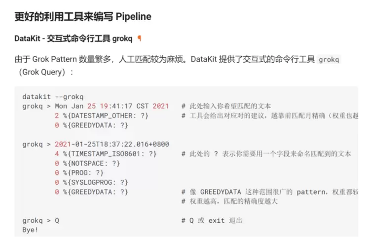 对于模板不能适配的日志格式,观测云也提供了多种方式让用户能轻松完成日志解析。首先是在Pipeline解析过程中提供了“一键获取样本”并实时调试的能力,让用户可以实时查看Pipeline对日志的处理是否满足需求。同时为了降低编写Pipeline的难度,观测云还提供了交互式的命令行工具,帮助用户快速选择适合某个字段的函数。