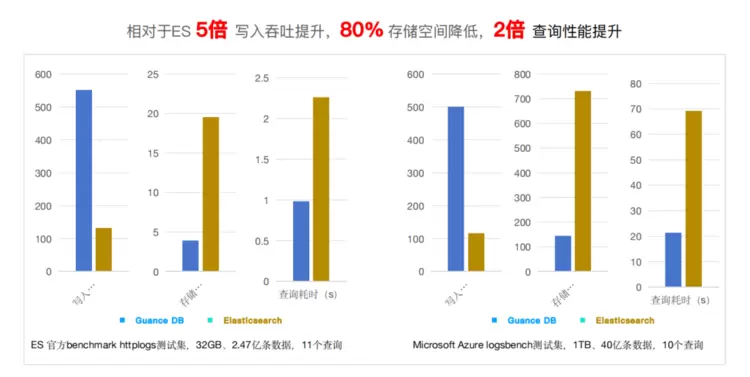 GuanceDB满足了观测云对 Schema Free 的要求,解决了数据 Schema 频繁变化痛点;提高了数据写入的性能,保证了数据写入的时效性和查询的实时性;提升了全文检索的性能并降低查询的资源开销...... 总而言之,观测云最终实现:仅使用 Elasticsearch 的 1/3 成本、获得 2~4 倍的性能提升,整体性价比提升了近 10 倍!
